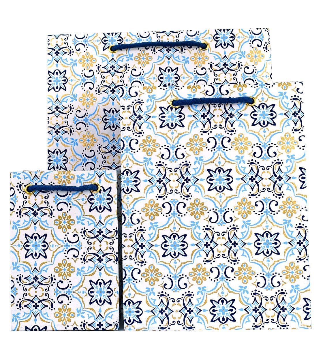 V33596; V33565; V33534 - Boho Tile Gift Bag Blue - GBG258.00/48 10/PK