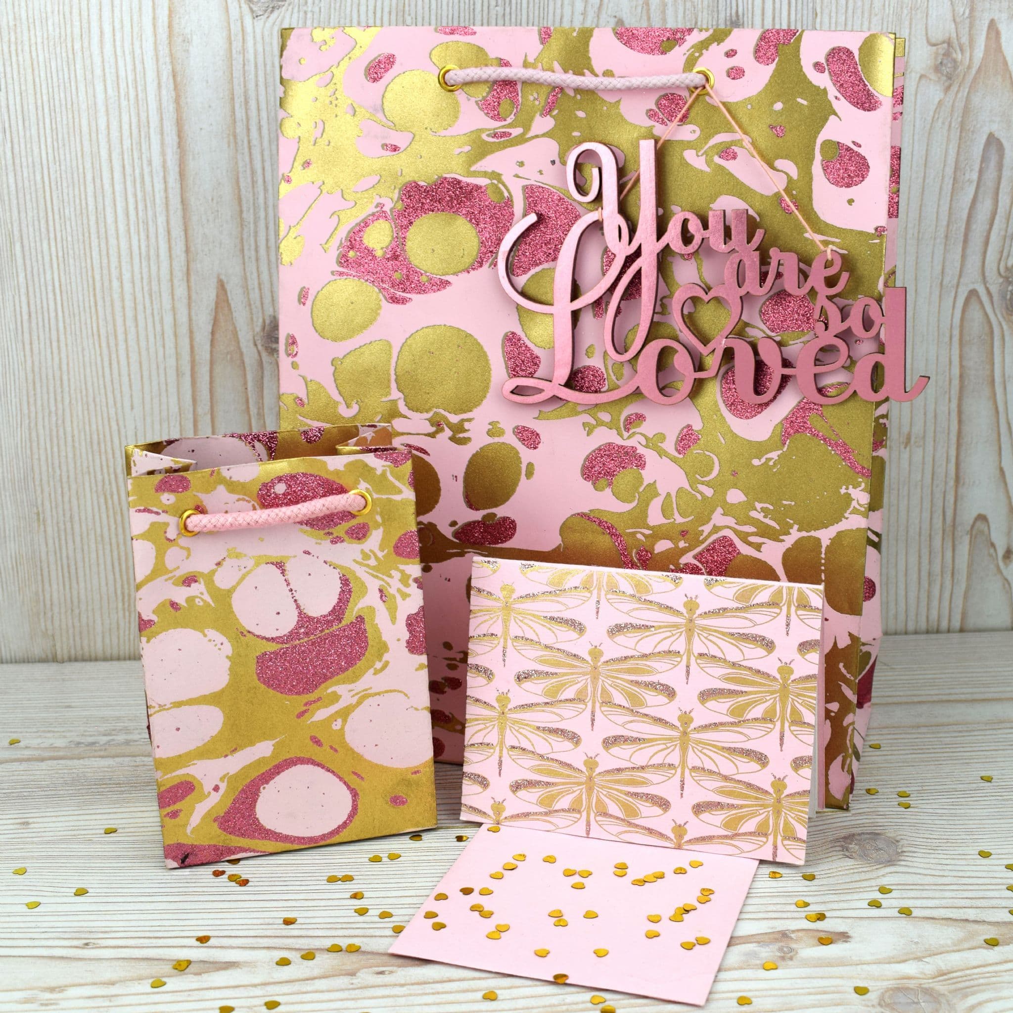 Rose Pink foiled MDF topper with matching hanging cotton cord. Perfect for topping off a gift bag or as a Wedding table decoration!