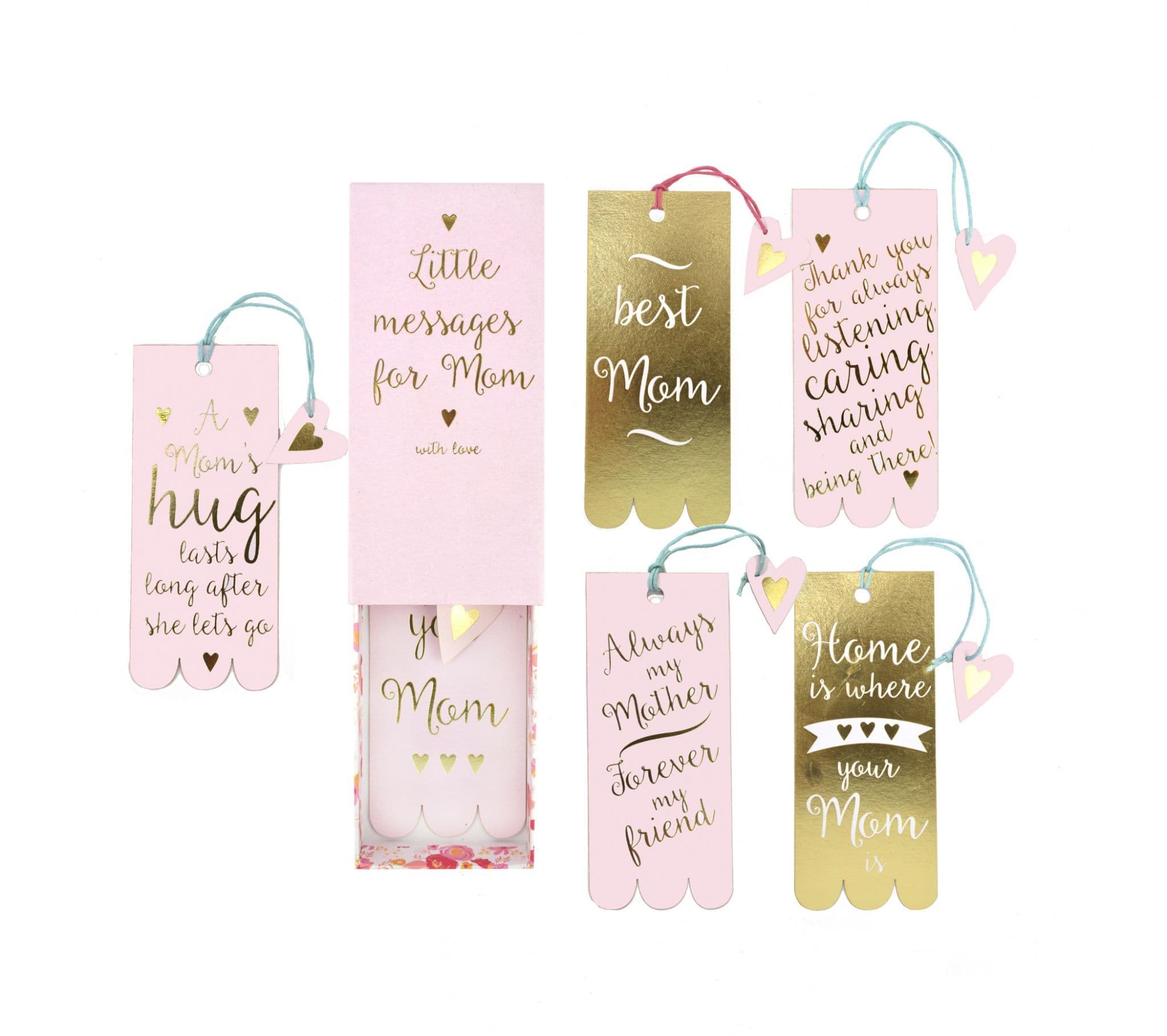 Gift Box containing 6 Messages of Love, to remind Mom just how special she is through the year! Made from thick recycled card with gold foild highlights, perfect as bookmarks, gift toppers or why not pop one on her pillow as a lovel surprise!